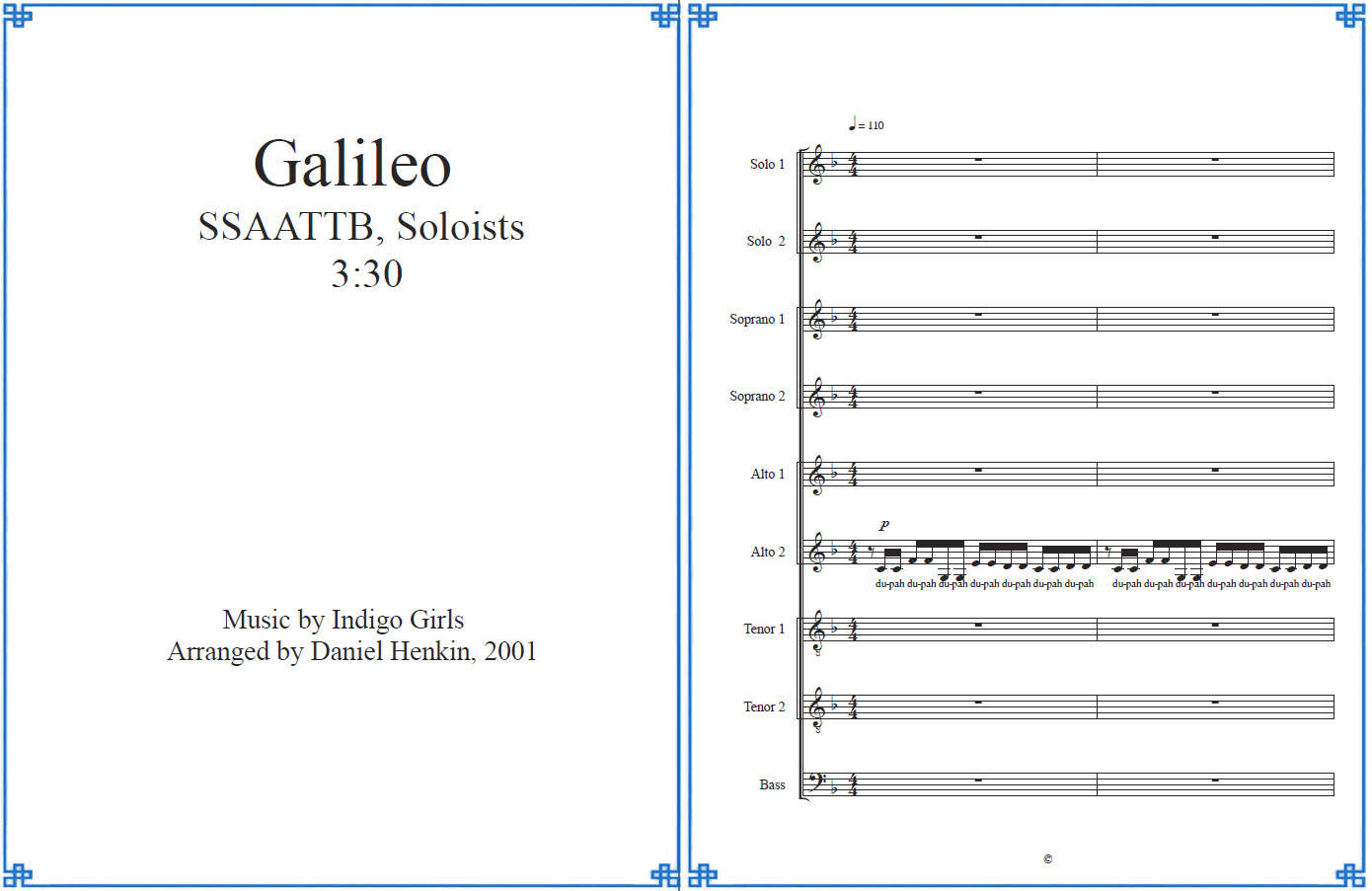 Arranged by Daniel Henkin, 2001